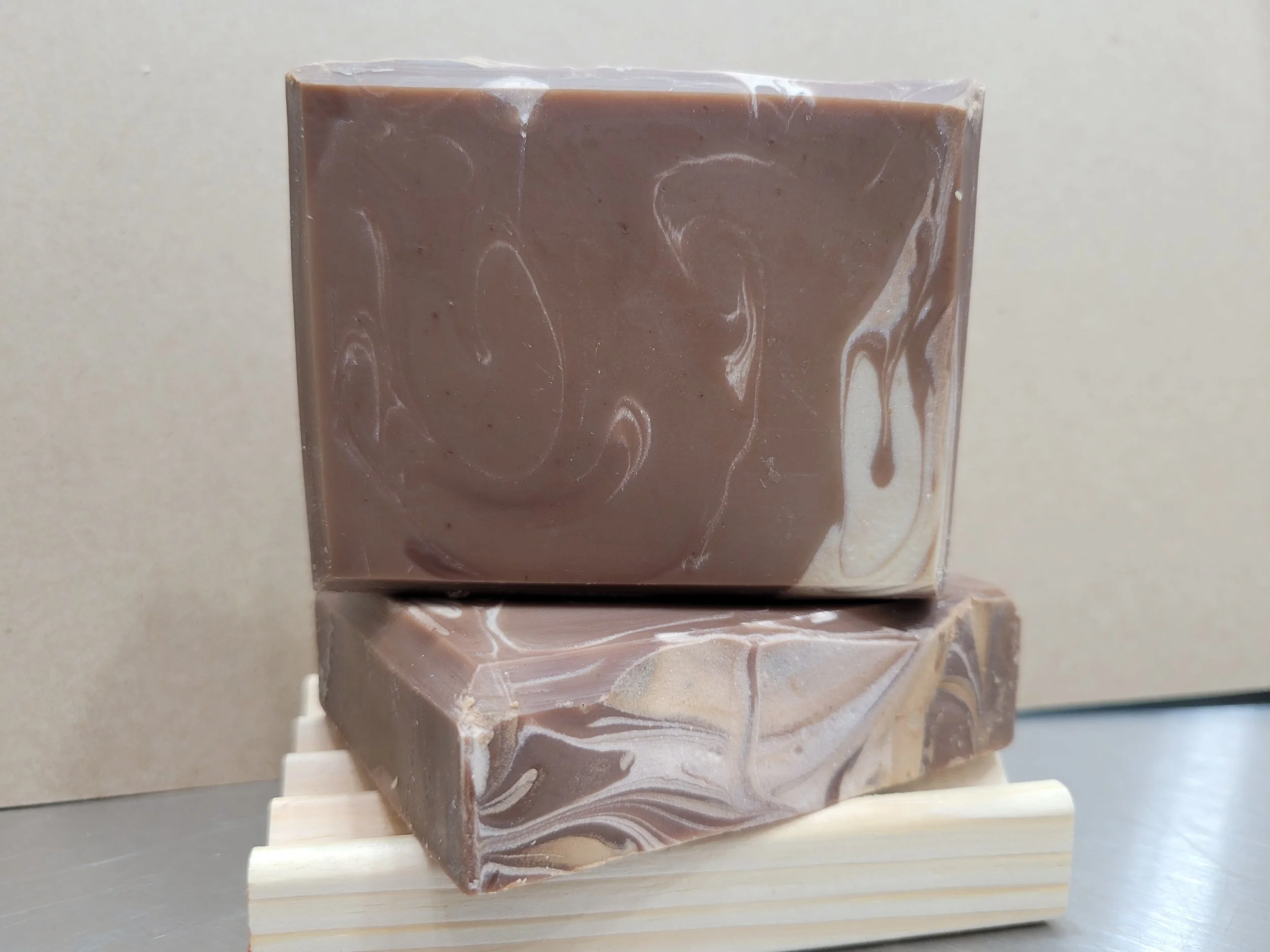 Rain, olive oil, coconut oil, tallow, sodium hydroxide, rice bran oil, cocoa butter, shea butter, fragrance, organic ground ginger, cocoa powder, titanium dioxide, mica.